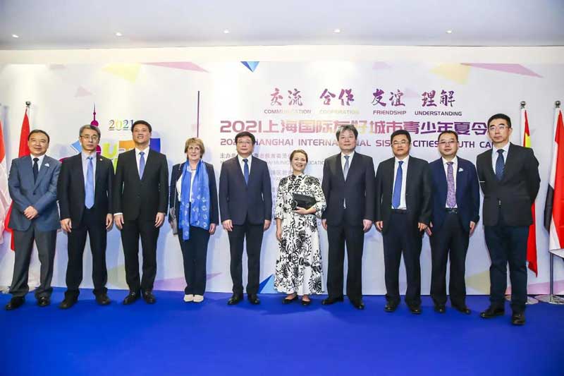 In order to continue to deepen the educational exchanges between Shanghai and various international sister cities, enhance friendship and understanding between among people from all over the world, and make sure the “continuation of contact among sister cities despite the stopping of visits” and the “ continuation of friendship exchanges” under the new normal of global pandemic prevention and control, the “2021 Shanghai International Sister Cities Youth Camp”, organized by Shanghai Municipal Education Commission, undertaken by Education Bureau of Yangpu District, co-organized by Yangpu Education International Exchange Service Center, Shanghai International Education Association and No. 1 High School Affiliated to Tongji University was opened in No. 1 High School Affiliated to Tongji University on July 19, with other participants viewing in different places around the globe. Chen Qun, Deputy Mayor of Shanghai Municipal People's Government attended the event and announced the opening of the Camp. Huang Yongping, Deputy Secretary General of Shanghai Municipal People's Government, Xie Jiangang, Party Secretary of the Yangpu District Committee, Xue Kan, Deputy Party Secretary of the CPC Yangpu District Committee and Mayor of Yangpu District, Li Yongzhi, Deputy Director General of Shanghai Municipal Education Commission, Liu Guangyong, Deputy Director General of Foreign Affairs Office of the Shanghai Municipal People’s Government, Wang Hao, Deputy Mayor of Yangpu District and Jiang Haishan, President of International Education Association Shanghai attended the opening ceremony.